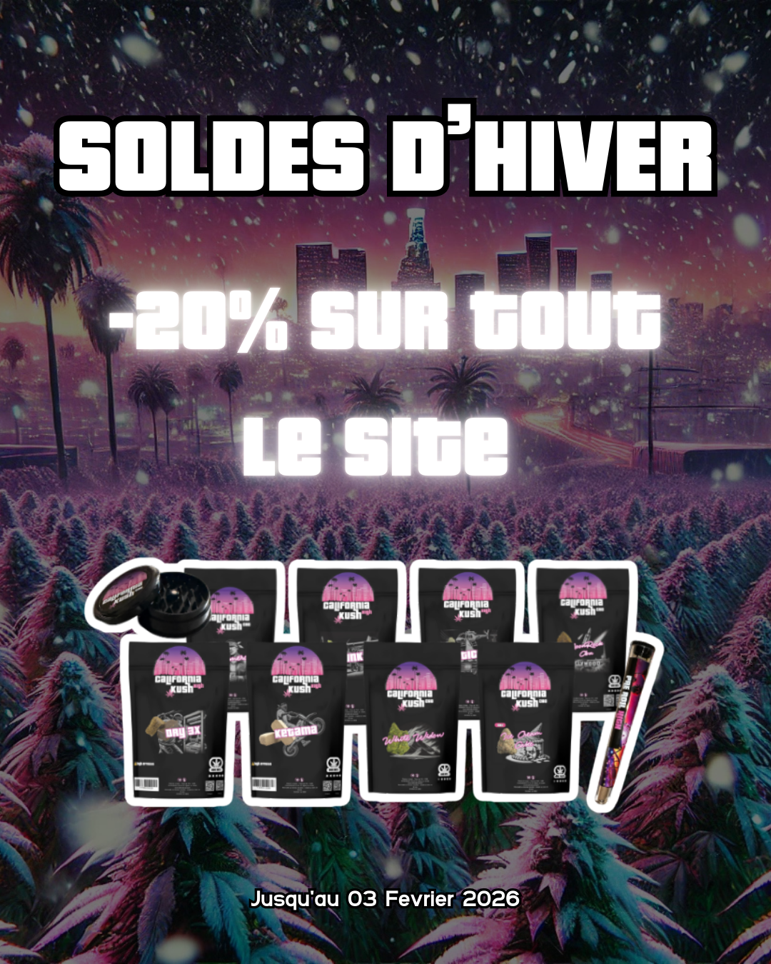Chez California Kush, nous sommes passionnés par l'idée de vous apporter le meilleur de la Californie directement chez vous. Chaque souche est soigneusement choisie pour vous garantir de vivre la véritable expérience du CBD californien. Plonge dans notre collection exclusive et trouve ton échappatoire parfait avec California Kush.