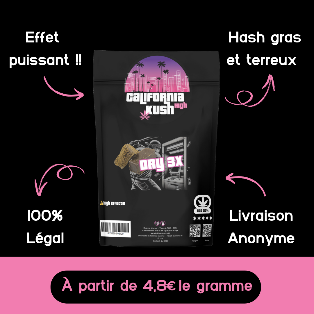Tu veux planer comme avec un gros joint mais ĂȘtre sĂ»r du produit que tu fumes ? Le Dry 3X est fait pour toi. BoostĂ© Ă Â 30% de B30, une molĂ©cule innovante et lĂ©gale, t'as un effet de ouf, sans parano ni bad trip juste de la dĂ©tente puissante.Â