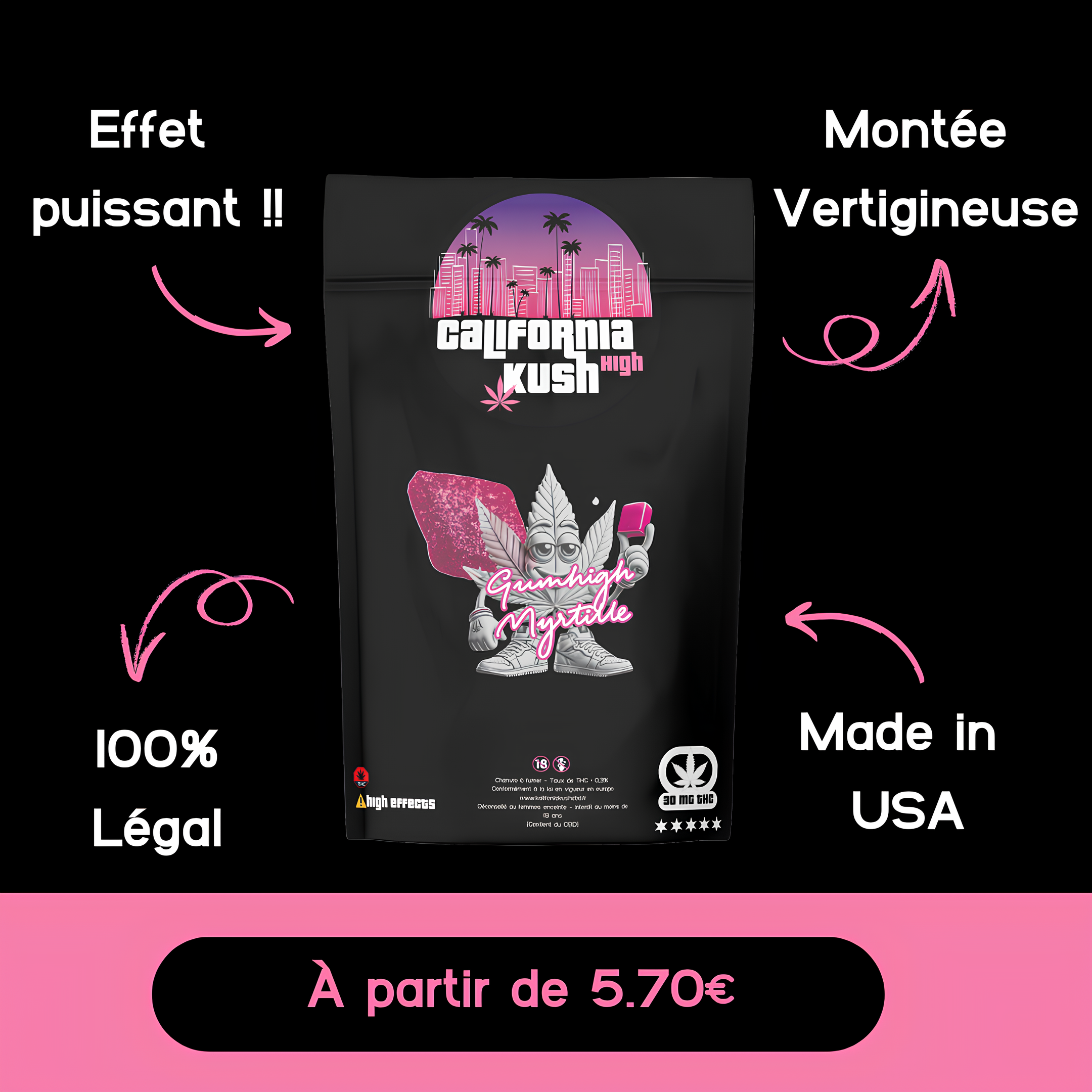 Le GumHigh Myrtille est le plus puissant de toute la gamme : 30 mg de THC par unitĂ©. On parle pas dâun petit effet de fond lĂ , mais dâun vrai dĂ©collage.
